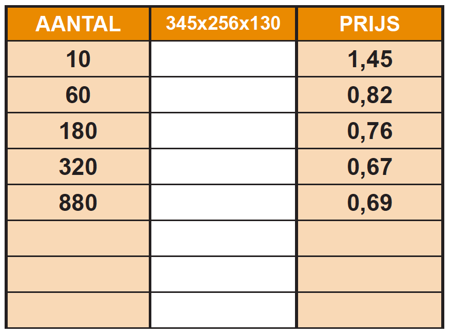 Onze stevige dozen zijn gemaakt van enkelwandig karton met een verstevigde bodem. De extra versteviging beschermt tegen beschadiging en ongewenste toegang, zodat producten in perfecte staat aankomen.